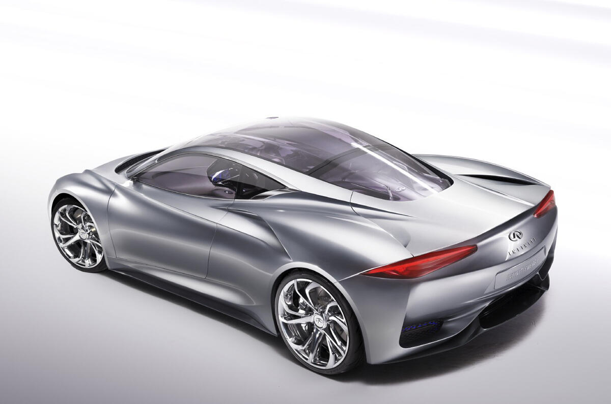 The sculpted coupe looks a bit like a BMW Z4 and will debut at the Geneva Auto Show in March 2012. Infiniti plans to bring a mid-engine two-seater electric sports car to next years Geneva show according to AutocarThe car will likely be a range-extended EV and could use technology from. More details to come at the Geneva Motor Show.