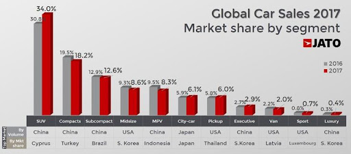 2017 Worldwide Car Sales Segments Cars For Sale Luxury Cars Luxury Automotive
